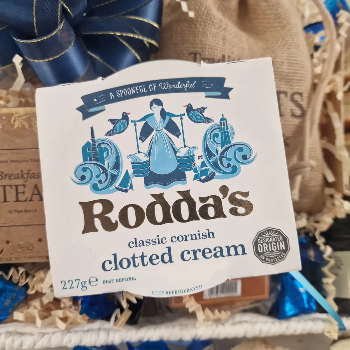 Please note: contains perishables (clotted cream) to be kept chilled. And the scones will have a minimum of 48hrs shelf life from delivery.What's in the hamper:- Rodda's Classic Cornish Clotted Cream 227g
