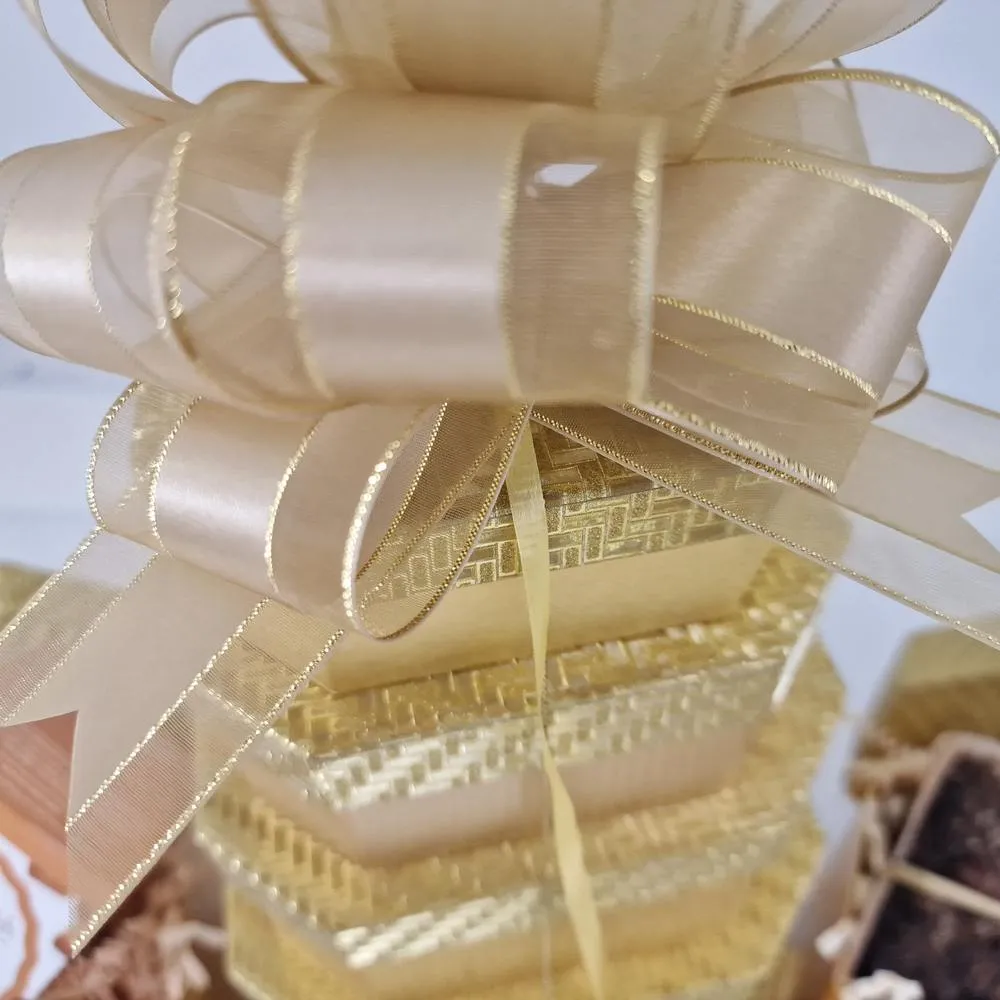 Excellent product. Uncle and Autie were really impressed with the golden set of boxes for their wedding anniversary. Delivered on time and with the card