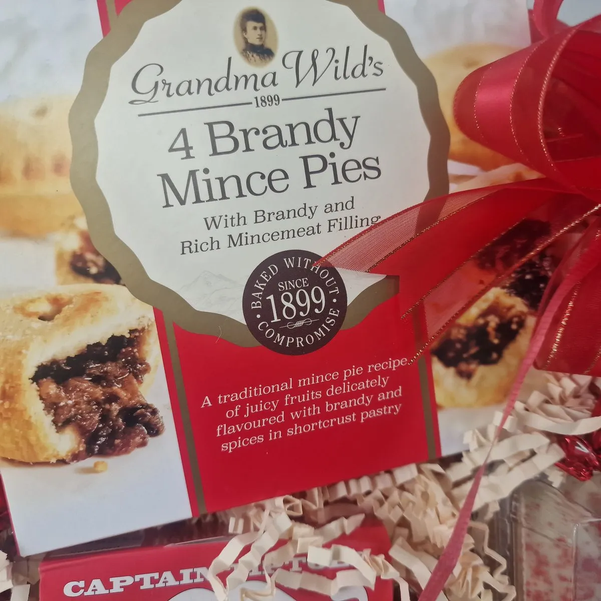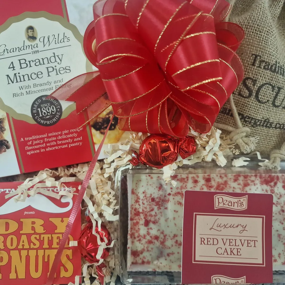 This great-value Christmas hamper is packed with festive treats and makes a perfect gift for staff, clients, friends, or family. Presented in a charming reusable basket, it’s brimming with seasonal delights to satisfy every sweet and savory craving. Inside, you'll find a box of four Brand Mince Pies, a rich Red Velvet Cake, crunchy Dry Roasted Nuts, Sicilian Lemon Cookies, and indulgent Chocolate Raspberry Caramels. Whether you're spreading holiday cheer at the office or with loved ones, this thoughtfully curated hamper ticks all the festive boxes and brings a touch of joy to any Christmas celebration.