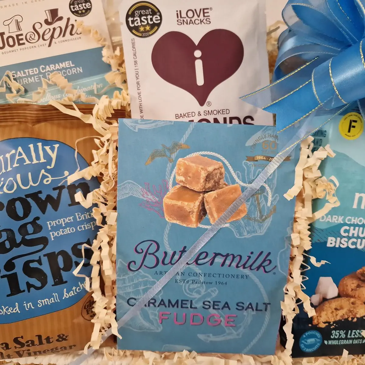 Finding the perfect gluten-free gift just got easier—and a whole lot more delicious. Priced at an exceptional £39.50, this premium snacking hamper is the ultimate treat for coeliacs or anyone following a gluten-free lifestyle. We’ve done the taste-testing for you: every single item in this hamper is a Great Taste Award winner! Indulge in Nairn's Dark Chocolate & Coconut Oat Biscuits, Lightly Salted Gourmet Crisps, Caramel & Sea Salt Fudge, Double Salted Caramel Popcorn, and Smoked Almonds. Beautifully presented inside a handmade, reusable woven basket (36x26x9cm), your gift is lovingly secured using 100% recyclable, biodegradable eco-packaging. Finished with a gorgeous sky-blue ribbon and your unique personalised gift message, it is a charming, zero-compromise gluten free gift. Select your nominated delivery date at checkout and delight someone special today. And order by 1pm for next-day UK delivery.